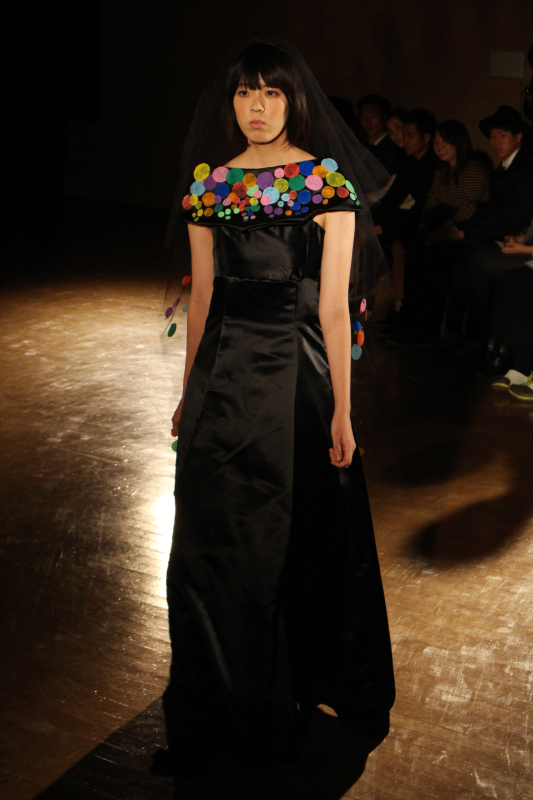 真っ白なルックからショーはスタート。最初のルックはつぼみをイメージしており、ショーの始まりを意味している。今回のコンセプトとして、ショーが進むにつれてルックに使われる色が一色ずつ増えていく。白、黒と始まり最後には赤・青・緑・黄色・紫・黄緑・水色・ピンク・オレンジと11色の色が使われた。ラストを飾るルックは、プラバンのパーツで色を入れていて、全体で色のバランスを取ることに苦労したという。彩度を持たない白と黒から始まりショーは、最後には種々の鮮やかな色を用い極際を彩った。
